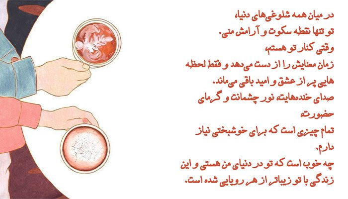 با خوندن این متن عاشقانه حس و حالم کلی عوض شد. شما هم وقتی یه متن قشنگ و عاشقونه میخونین همین حس رو میگیرین؟ به نظرتون این متنها برای آرامش روحی و روانی هم مفیده؟ من که وقتی این متنها رو میخونم، حس میکنم تو یه دنیای دیگهام.